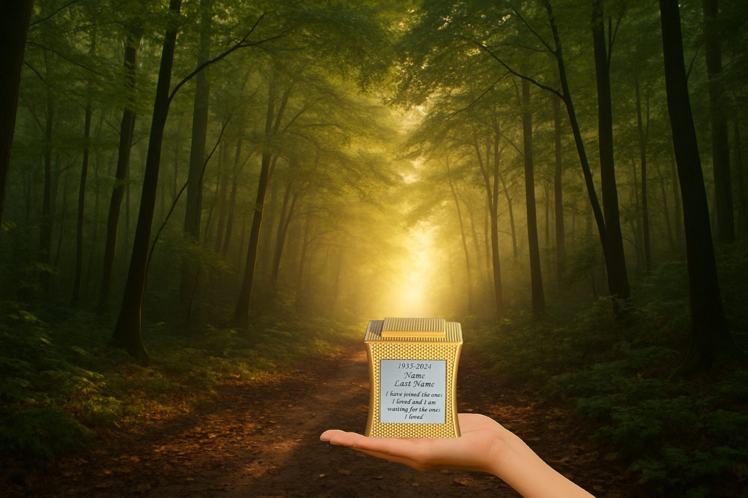 THIS ELEGANT COMMEMORATIVE MINI URN, CREATED AS A LASTING TREASURE, IT PRESERVES YOUR LOVED ONE MEMORY WITH DIGNITY AND OFFERS A REFINED WAY TO HONOR A LIFE FOREVER CHERISHED.